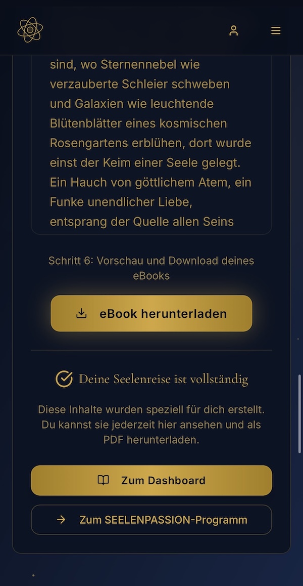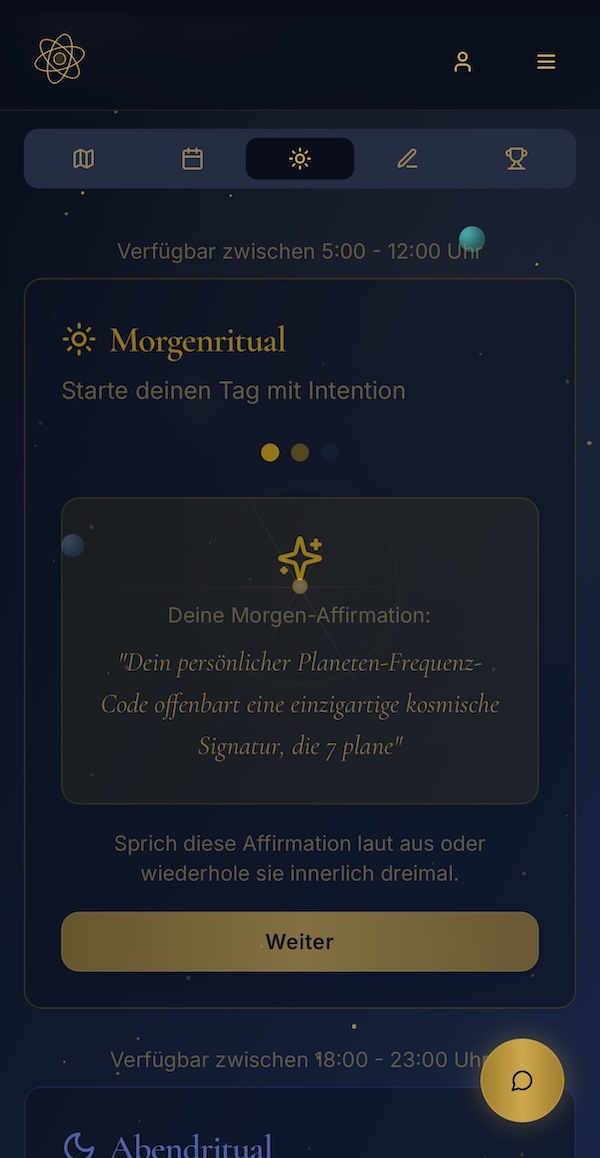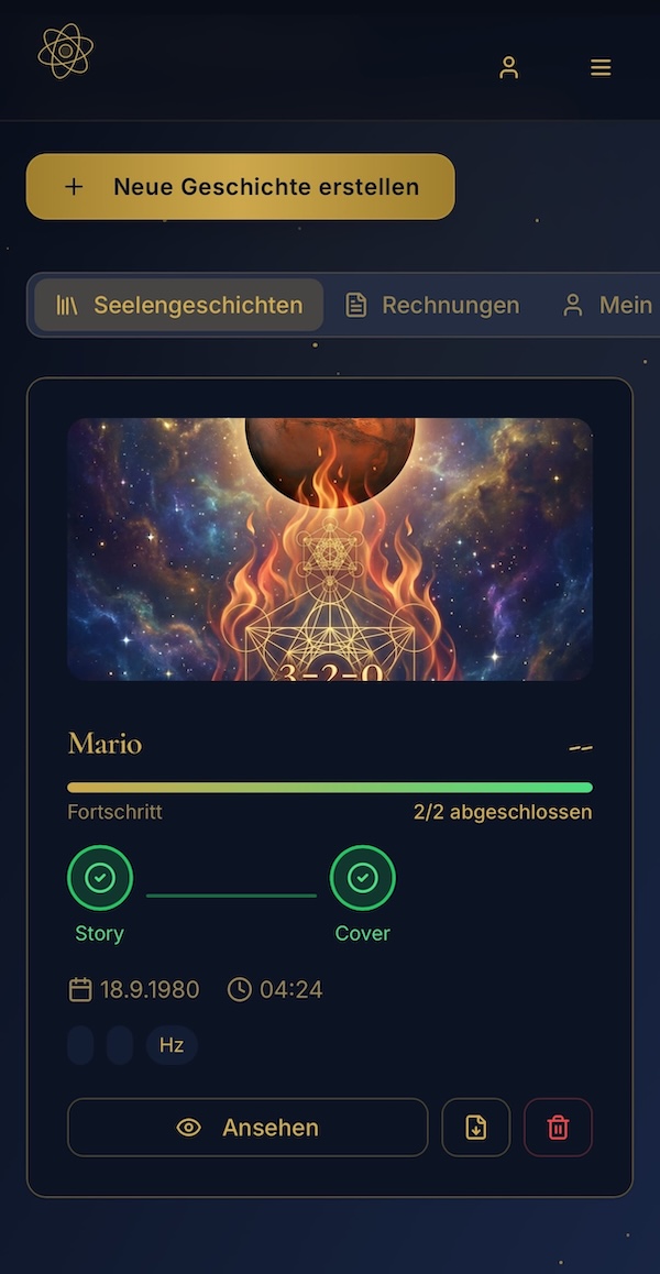 Auf Basis dieses Codes bekommst du eine Seelengeschichte und eine Interpretation deiner Themen, Potenziale und Entwicklungsfelder sowie begleitende Meditationen, Journaling-Prompts und ein 365-Tage-Programm mit Ritualen und Übungen. Ergänzend stehen kosmische Klang- bzw. Frequenz-Audios zur Verfügung, die dich beim Entspannen, Fokussieren und Ausrichten auf deine Intentionen unterstützen sollen.